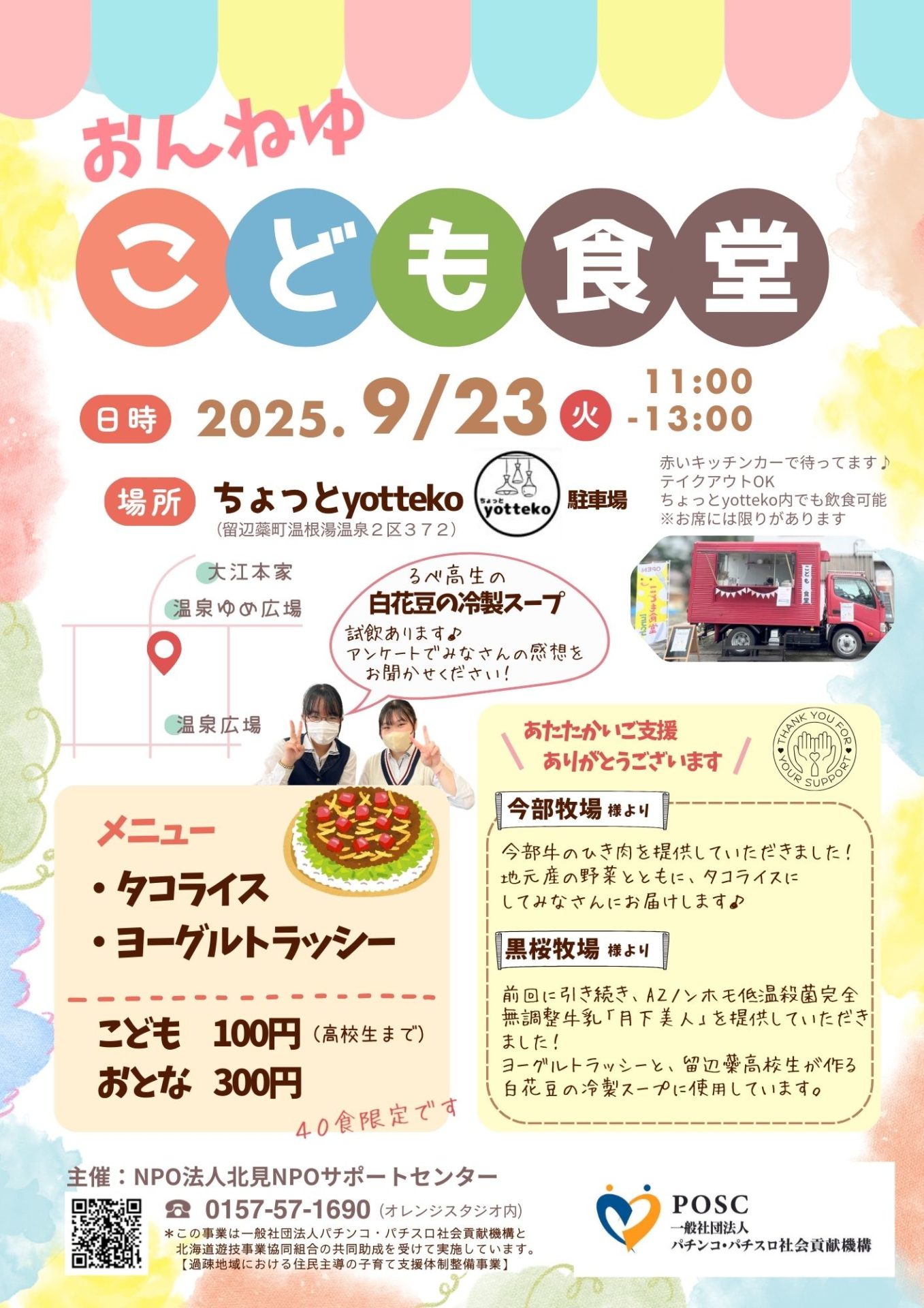 おんねゆこども食堂を9月23日(火)祝日に開催します。