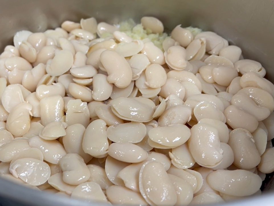 地域福祉ゼミでは、地元特産品である白花豆を使ったレシピを考え、「白花豆の冷製スープ」を作りました。