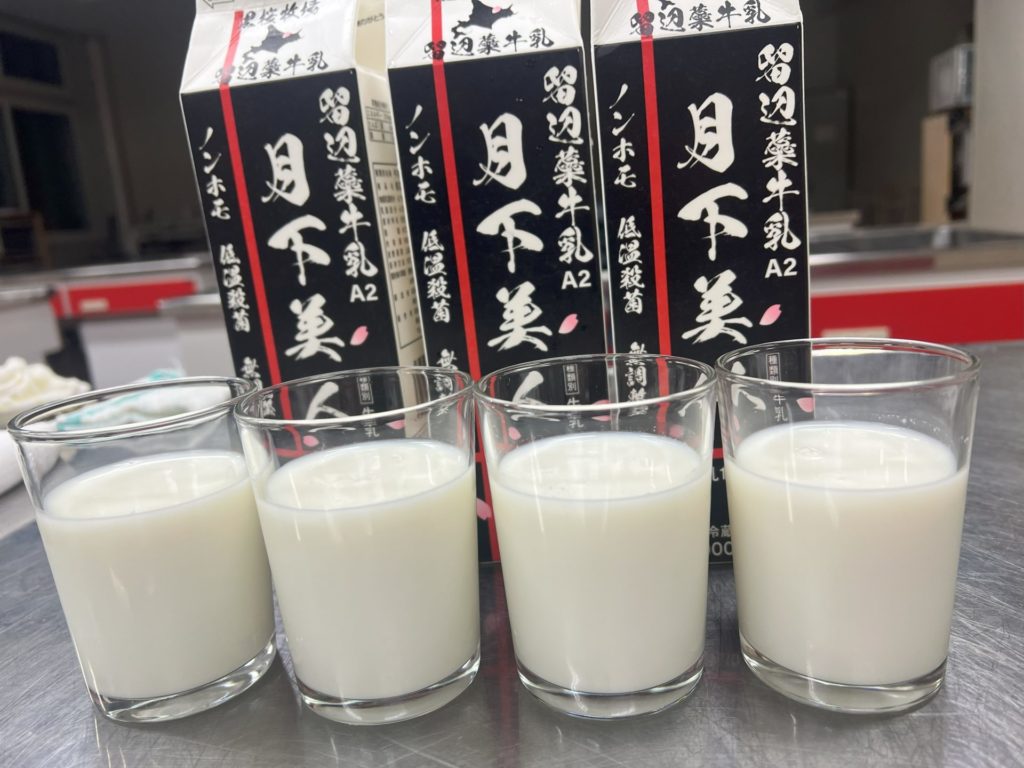 こども食堂の趣旨に賛同いただいた留辺蘂町の「黒桜牧場」さんより、ノンホモ牛乳「月下美人」の提供もしていただき、今までよりさらに濃厚でおいしい高級感のある白花豆スープが完成しました。