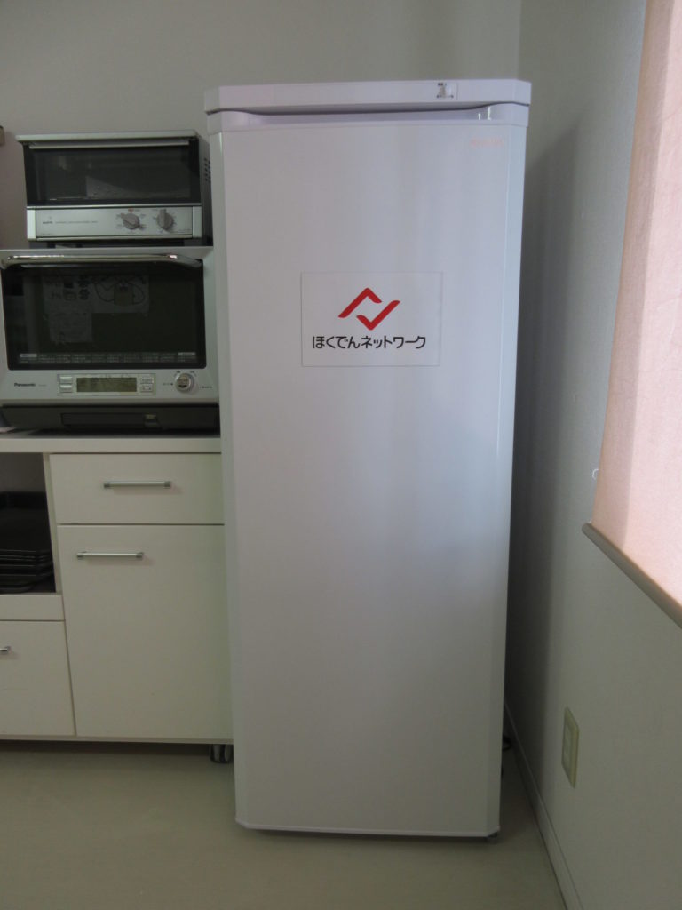 ほくでんネットワーク様より、冷凍庫を寄贈していただきました。